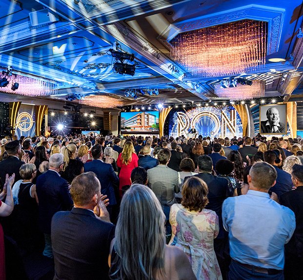 O elegante Auditório do histórico Fort Harrison encheu‑se rapidamente até estar lotado. Foi o mesmo de novo no Salão de Bailes Crystal histórico, o Átrio do Edifício de Flag e todos os outros locais possíveis no campus de Flag. A assistência para a Celebração do Aniversário de LRH de 2023 foi sem precedentes, quebrando todos os recordes anteriores com a maior assistência de sempre na história.