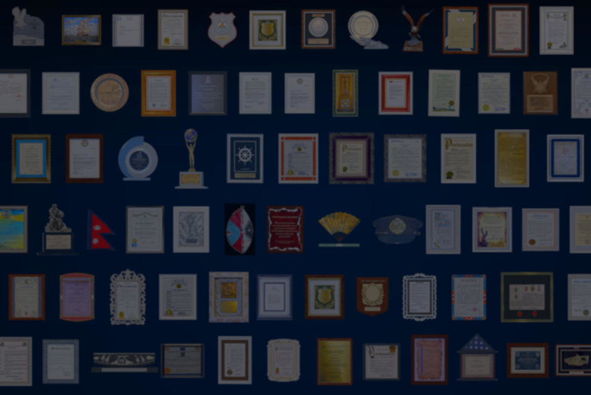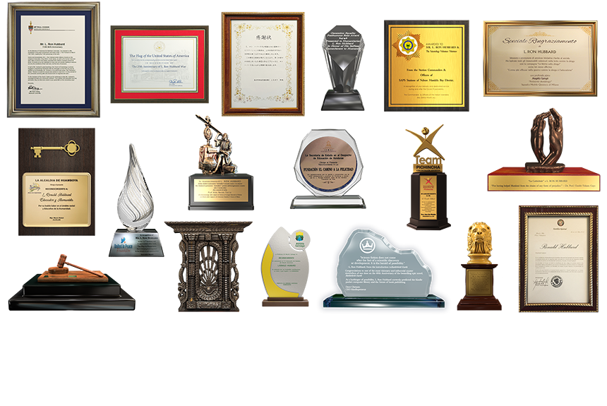O Sr. Miscavige depois apresentou uma cascata de honras outorgadas a L. Ron Hubbard em reconhecimento do seu aniversário: