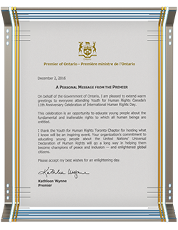 - Unidos pelos Direitos Humanos e Youth for Human Rights, que desencadeou um movimento dos direitos humanos em Toronto (a cidade com maior diversidade étnica na Terra), na terra mais populosa da África na Nigéria e no Sri Lanka, onde Hindus, Budistas, Cristãos e Muçulmanos trabalham juntos para espalhar a Declaração Universal dos Direitos Humanos.