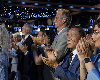 “Desde o último ano, o nosso sistema solar de Igrejas agora inclui: Budapeste, Hungria; Harlem, Nova Iorque; San Diego, Califórnia; e, na orla do nosso mundo terrestre, Auckland, Nova Zelândia”, disse ele antes de passar para as inaugurações mais recentes da Igreja no Vale de São Fernando, Califórnia; Miami, Florida; e Copenhaga, Dinamarca.