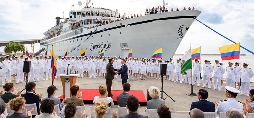 A semana foi coroada com um prémio que tem tudo a ver com o Freewinds e no entanto é monumental por si só. Porque na esteira duma campanha liderada pelo Freewinds que gerou a distribuição de milhões de exemplares de O Caminho para a Felicidade, A Verdade sobre as Drogas e A História dos Direitos Humanos por toda a Colômbia e seguindo pela inauguração duma Igreja de Scientology Nacional em Bogotá — as violações dos direitos na Colômbia caíram 96% e a nação venceu um acordo de paz histórico entre as tropas das FARC e o governo nacional, acabando com uma guerra civil de 50 anos. E assim foi que a Polícia Nacional Colombiana retribuiu, com a medalha de honra mais elevada para o líder eclesiástico da religião de Scientology, o Sr. David Miscavige, por “salvar a humanidade da violência, mal, terrorismo, tráfico de drogas e todos os fatores negativos que a ameaçam.”