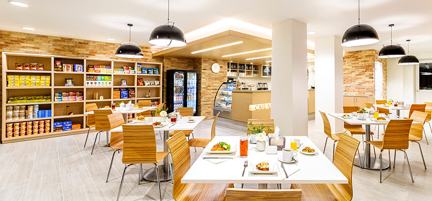 O retiro religioso é composto por mais de 70 quartos bem equipados e tem dois restaurantes, cada um oferecendo uma seleção diversa para satisfazer os paroquianos de cerca de 30 nações. O Café Natur oferece snacks deliciosos durante todo o dia para aqueles que estão nos intervalos de aconselhamento ou treino de Scientology, enquanto o Restaurante Magnolia também serve paroquianos, oferecendo cozinha de estilo buffet e serviço de mesa.