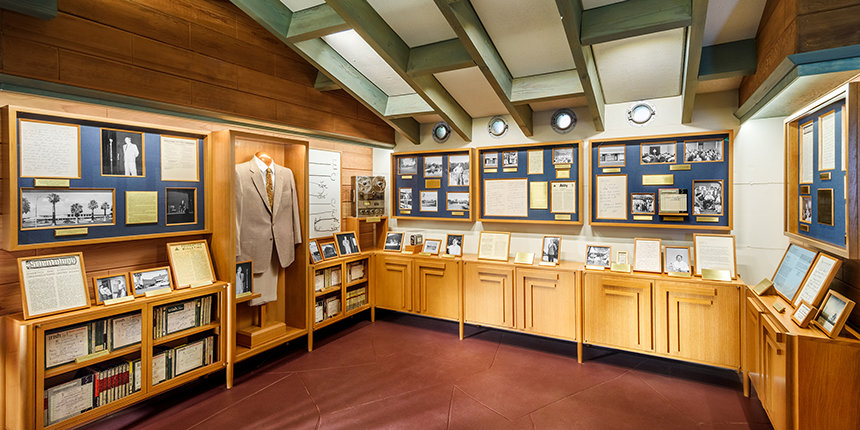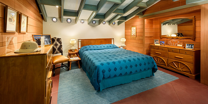 Também estão em exposição objetos pessoais, como o órgão de acordes Hammond S4 que o Sr. Hubbard gostava de tocar e o seu móvel de aparelhagem estéreo Coronado que enchia o ar com valsas e jazz. No exterior, até a Harley‑Davidson Hydra‑Glide azul‑glaciar e a sua carrinha Chevrolet Deluxe de 1951 foram restauradas ao seu esplendor vintage.
