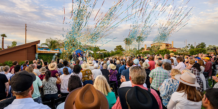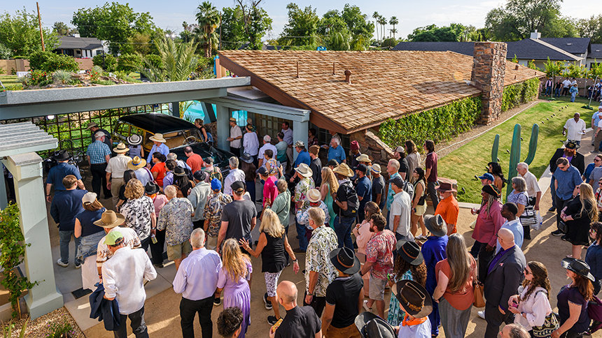 Hoje, uma audiência de Scientologists, líderes comunitários e historiadores reuniu‑se em Osborn Road sob o pôr do sol de Arizona para celebrar um glorioso puxar de fita, abrindo o restaurado Local Histórico. No interior, tiveram a oportunidade de ver artefactos raros da história, pois os visitantes podem ver a secretária original do Sr. Hubbard onde ele escreveu a obra marcante Dianetics 55!