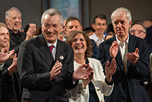 A assistência aplaudiu vez após vez, primeiro pela música ao vivo que iniciou as festividades, depois pelos discursos de líderes cívicos que, agradável e graciosamente, acolheram a abertura da Igreja.
