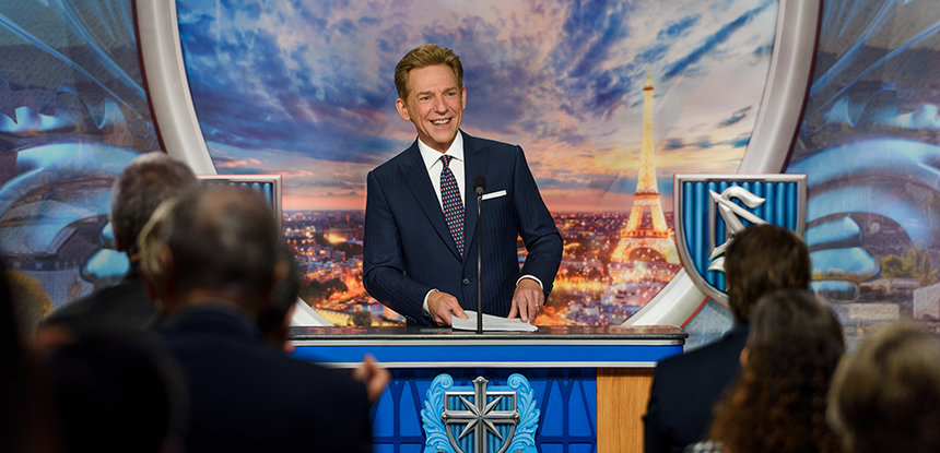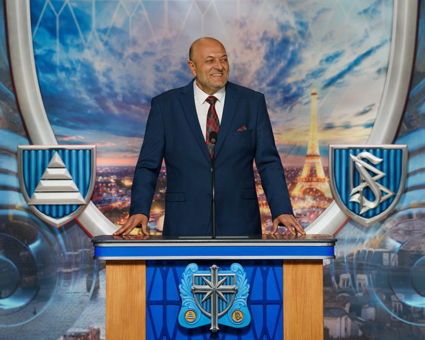 Nesse ponto, os milhares de paroquianos entusiasmados e os visitantes curiosos acorriam com empolgação à grande entrada da Igreja. Então, conforme a fita azul gigante no topo do edifício cintilante desceu, os fogos de artifícios dispararam, as serpentinas encheram o ar, as portas abriram e as multidões atravessaram o limiar para visitar este novo lar espiritual, a Igreja Ideal de Scientology e Centro de Celebridades de Grand Paris.